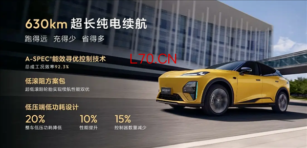 三电系统与现款630km长续航版保持一致,配备容量为77.94kWh的磷酸铁锂电池,CLTC纯电续航630公里,支持3C超充,15分钟可充至50%电量。