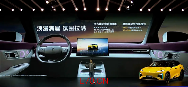 中控配备15.6英寸2.5K向日葵旋转屏,支持左右偏转,副驾侧配备12.3英寸智慧屏,结合55英寸AR-HUD抬头显示,组成五屏交互系统。支持四音区语音交互和全场景情境模式。