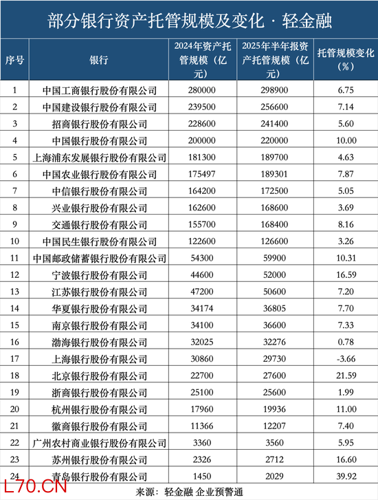不过,托管行业竞争日趋激烈,头部集中化趋势明显。中国银行业协会发布的《中国资产托管行业发展报告(2025)》显示,截至2024年末,中国银行业资产管理类产品托管规模为182.20万亿元,较上年末增长12.64%。