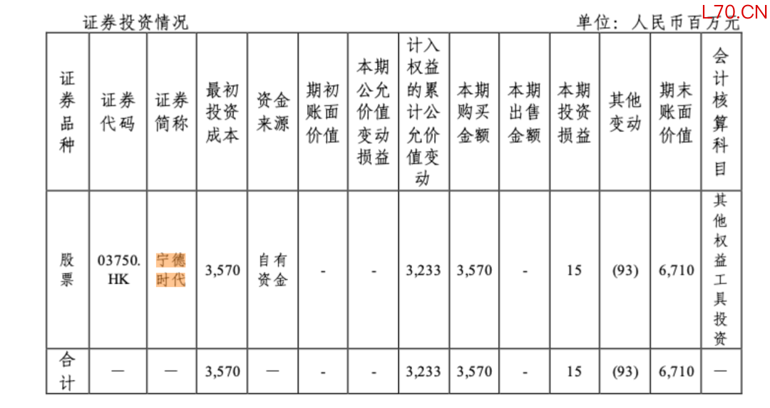 投资宁德时代收益增加