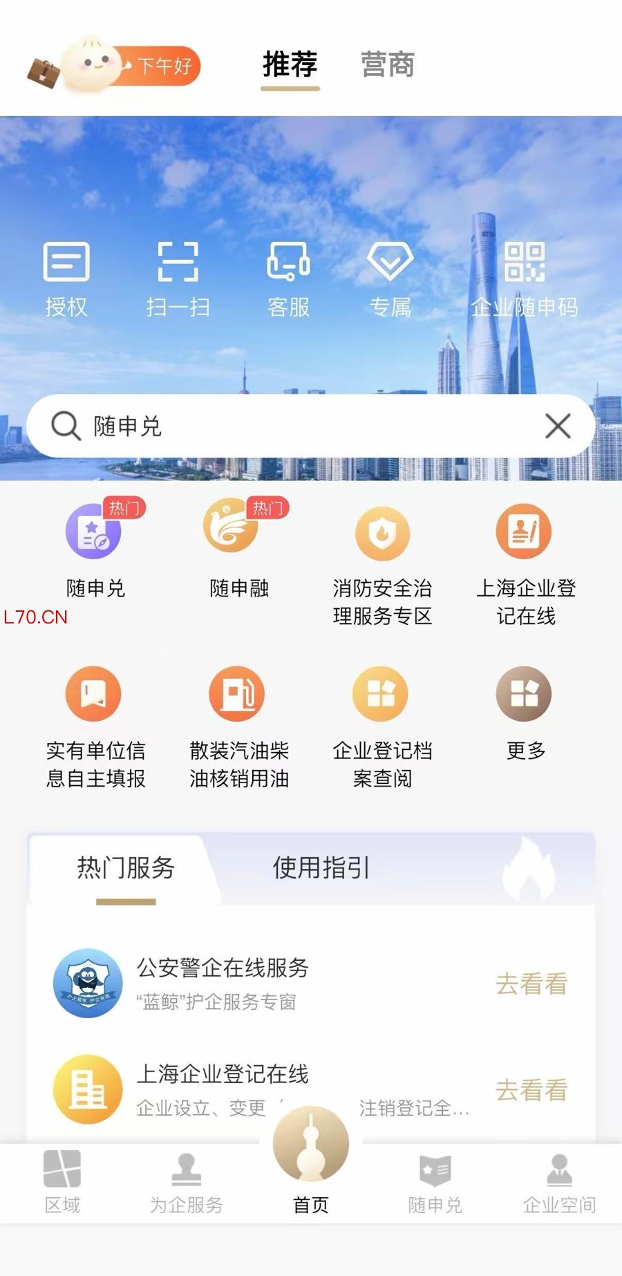 “随申办”企业云APP首页已上线“随申融”