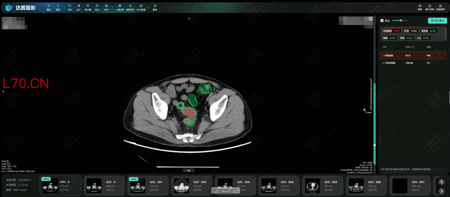 研究团队将AI模型部署在医院开展了两轮真实世界试验,共回顾了27433人的平扫CT影像,从中发现5例被遗漏的肠癌患者。其中一名患者曾连续两年拍摄平扫CT,均未检出肠癌,直到第三年通过肠镜确诊,此时肿瘤已发展增大。这意味着,AI模型可帮助类似情况的患者通过平扫CT更早发现异常,及时治疗。