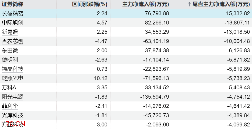 主力今日尾盘买卖这些个股